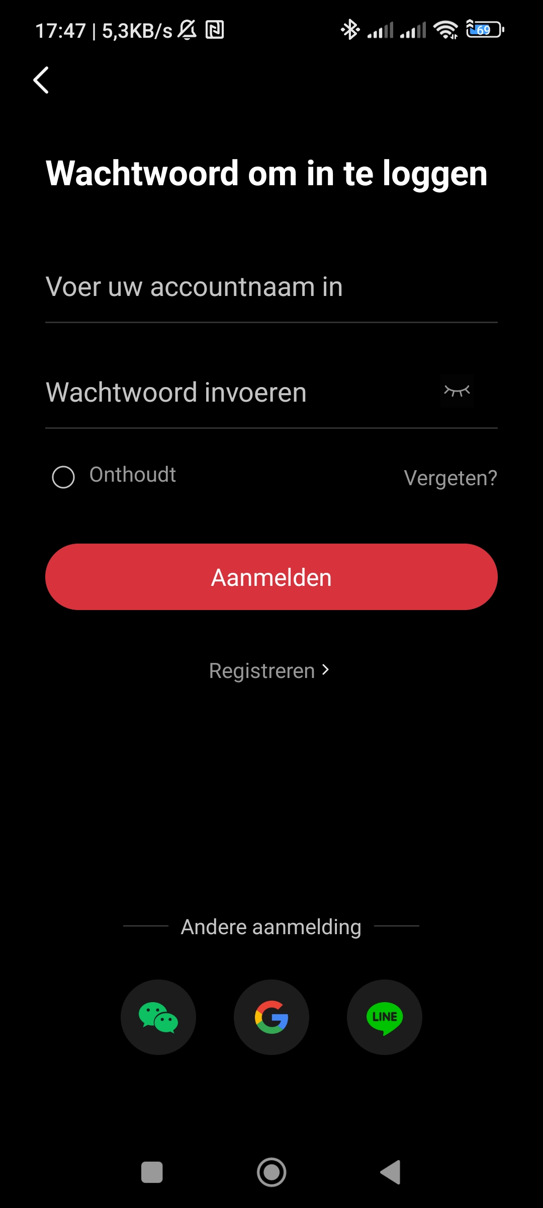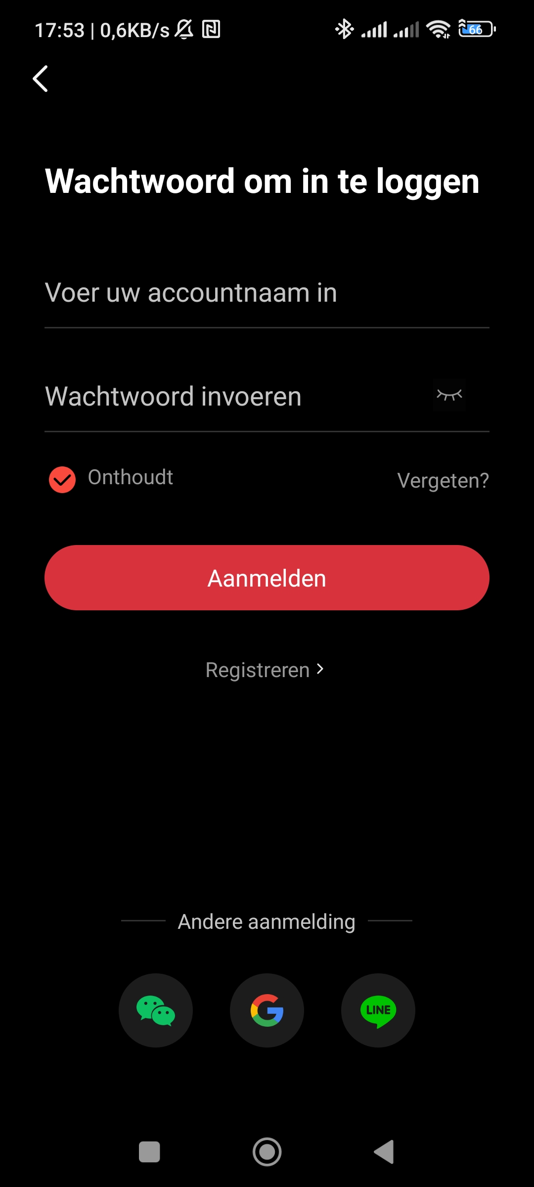 U kunt ervoor kiezen om Onthoudt aan te vinken. Dit zorgt ervoor dat u ingelogd blijft in de app.