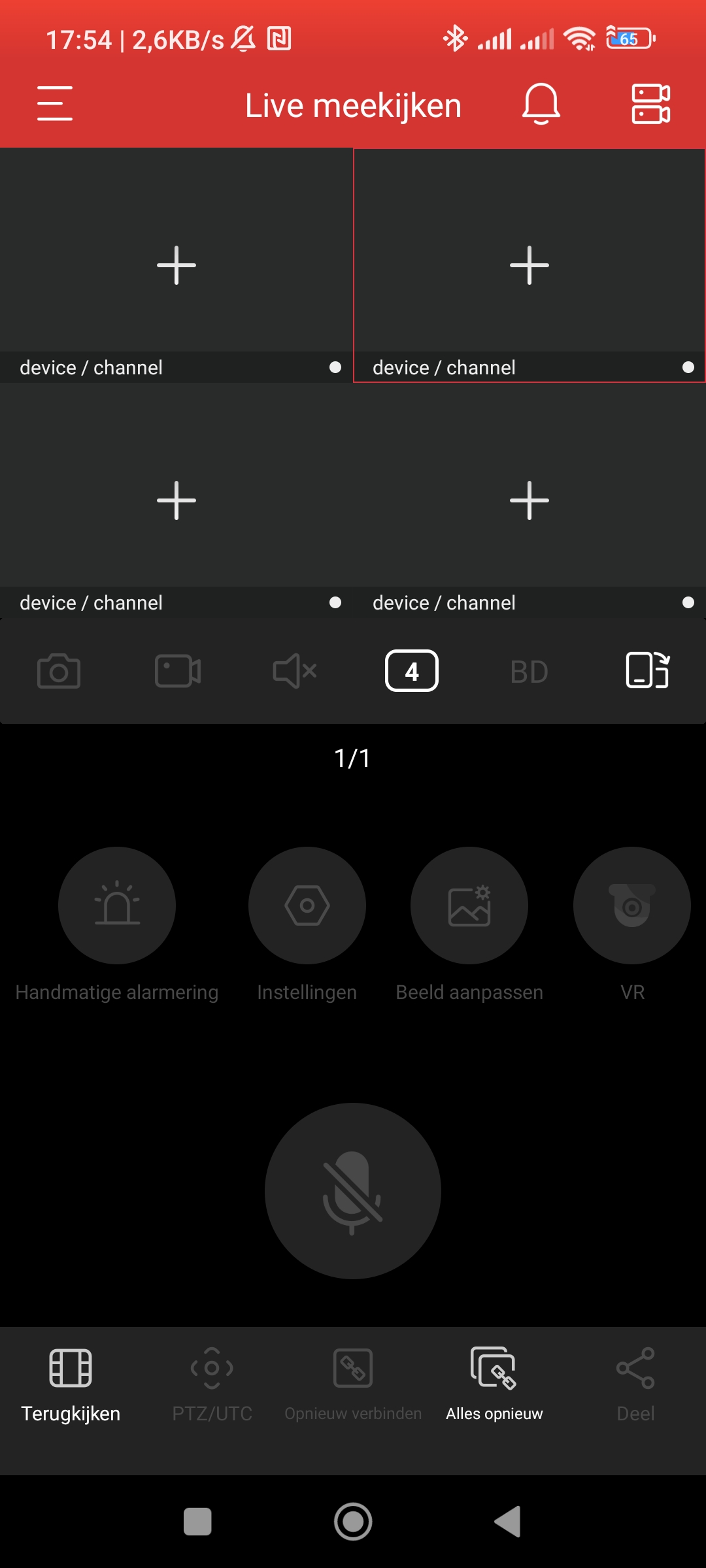 Als u bent ingelogd krijgt u het live view scherm te zien. In de rechterbovenhoek ziet u een icoon van twee camera’s. Druk hier op om naar het apparaat beheer scherm te gaan. U kunt hier uw apparaten beheren en toevoegen.